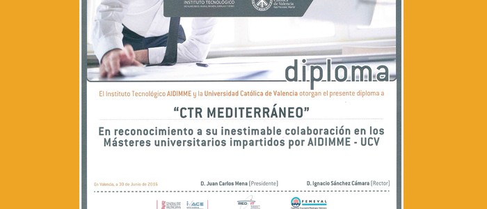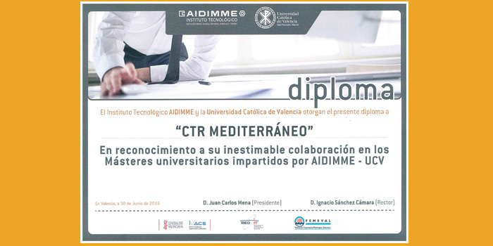 Aidimme imparte másteres desde hace ya 22 años y desde hace ocho, en colaboración con la Universidad Católica de Valencia , tiene como másteres oficiales el de Ingeniería del Tratamiento y Reciclaje de Aguas Residuales Industriales; el de Gestión Integrada de Sistemas de Calidad, Medio Ambiente y Seguridad y Salud en el Trabajo (posible doble titulación con Prevención de Riesgos); y el de Prevención de Riesgos Laborales (posible doble titulación con Gestión Integrada). Todos ellos se enmarcan en dos ámbitos: la gestión del agua y la de sistemas.